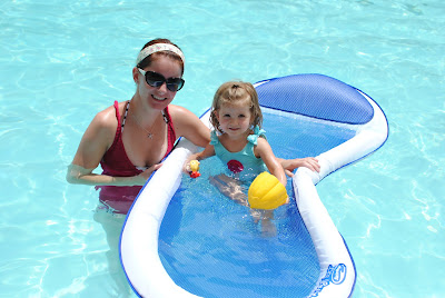 taking a ride on the raft with mommy and grandma
